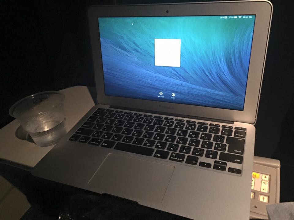 飛行機の中にいます。