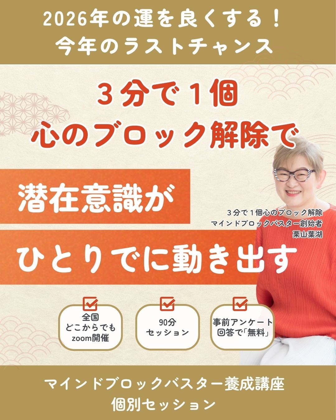 - 【2026-03-08 08:40:00】配信 【今日は巳の日】運の3つの層を解き明かした「春までに運がよくなる心のブロック解除」《マインドブロックバスター栗山葉湖》