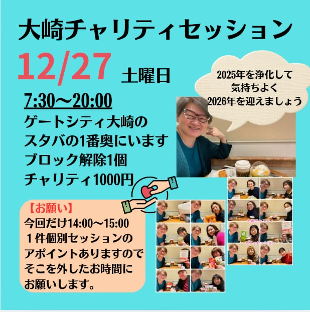 - 【2026-02-28 08:20:00】配信 【本日です!】栗山から直接ブロック解除受けられる大崎チャリティセッション《マインドブロックバスター栗山葉湖》
