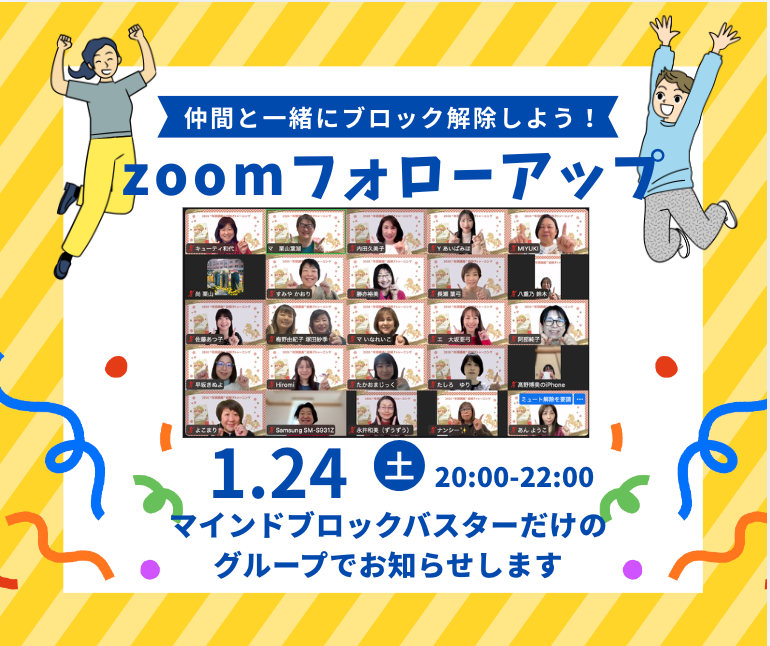【今夜集合】フォローアップはオンラインなのでどこからでも参加できます《マインドブロックバスター栗山葉湖》