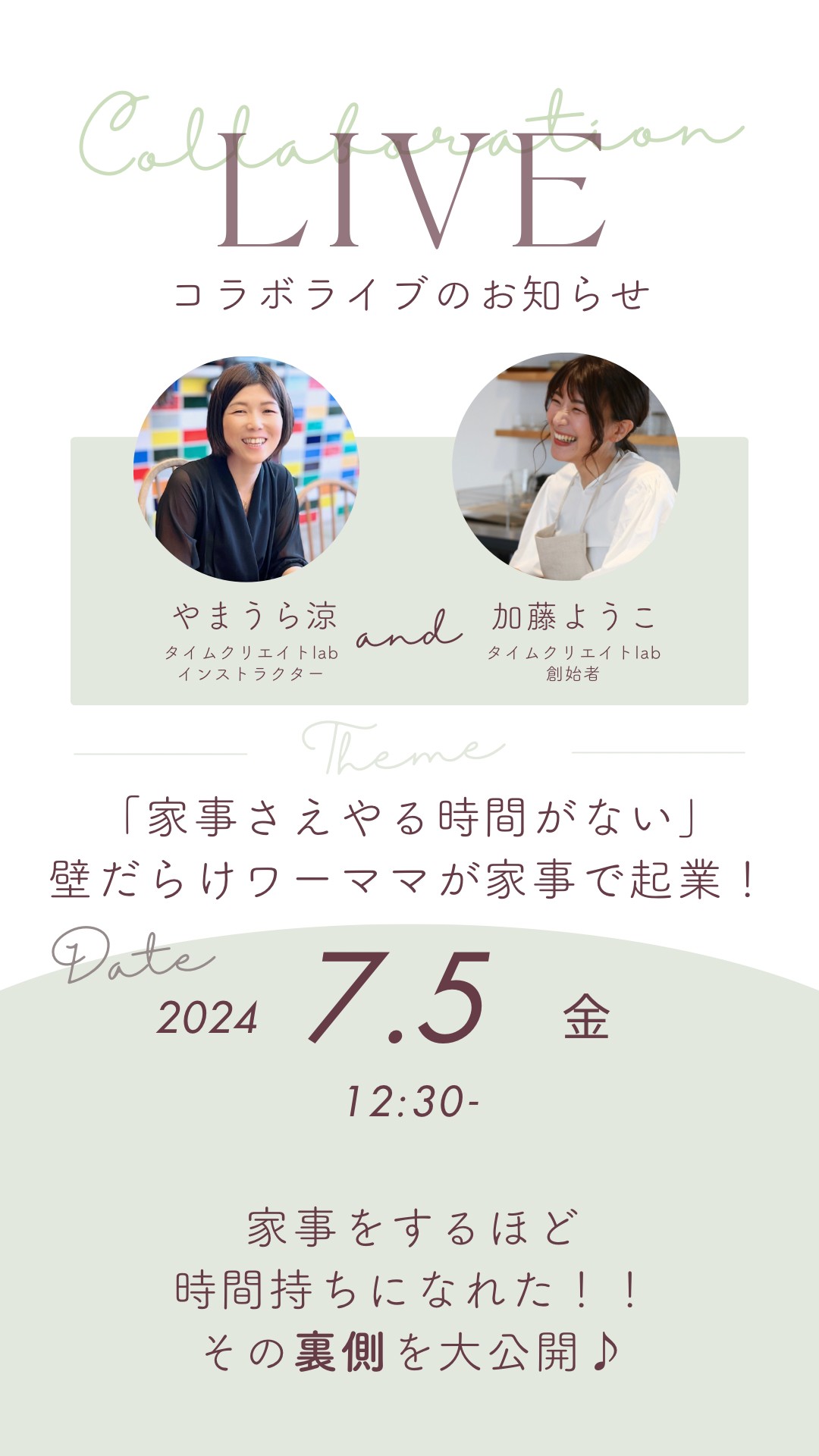 明日(7月5日)お昼12時30分〜インスタライブやります