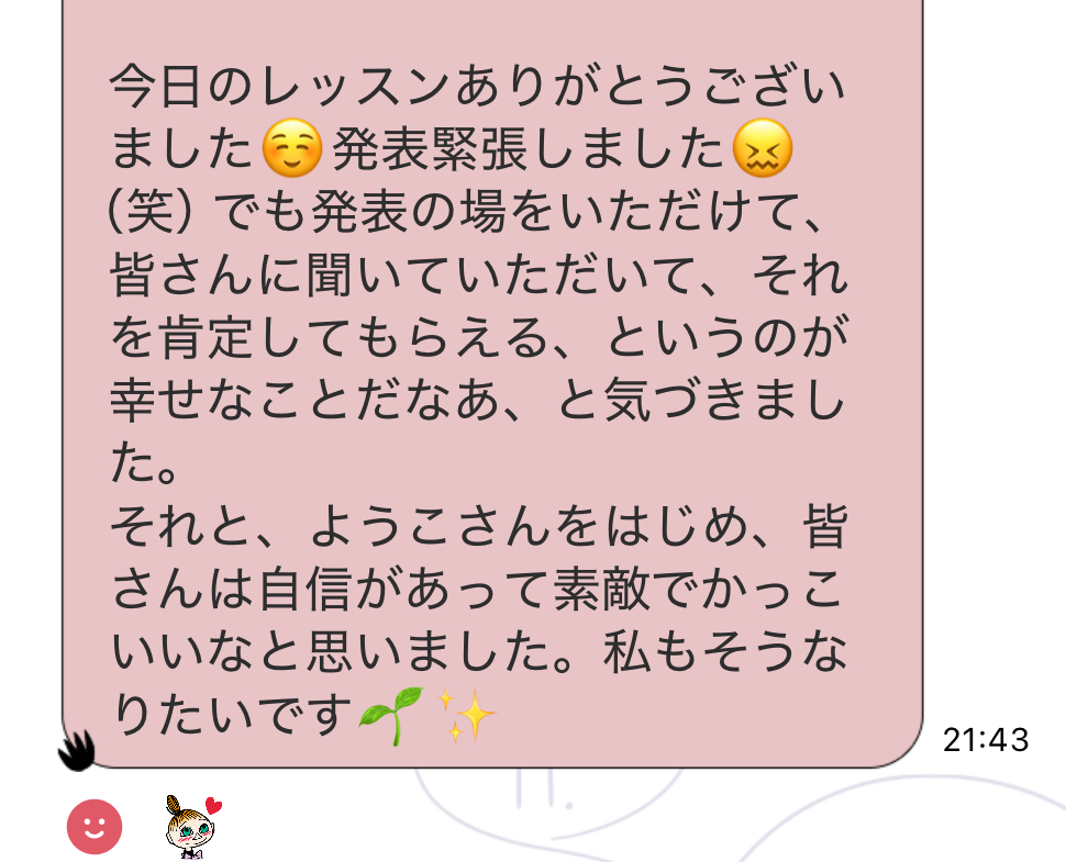 ↑講座当日の夜に届いたメッセージ