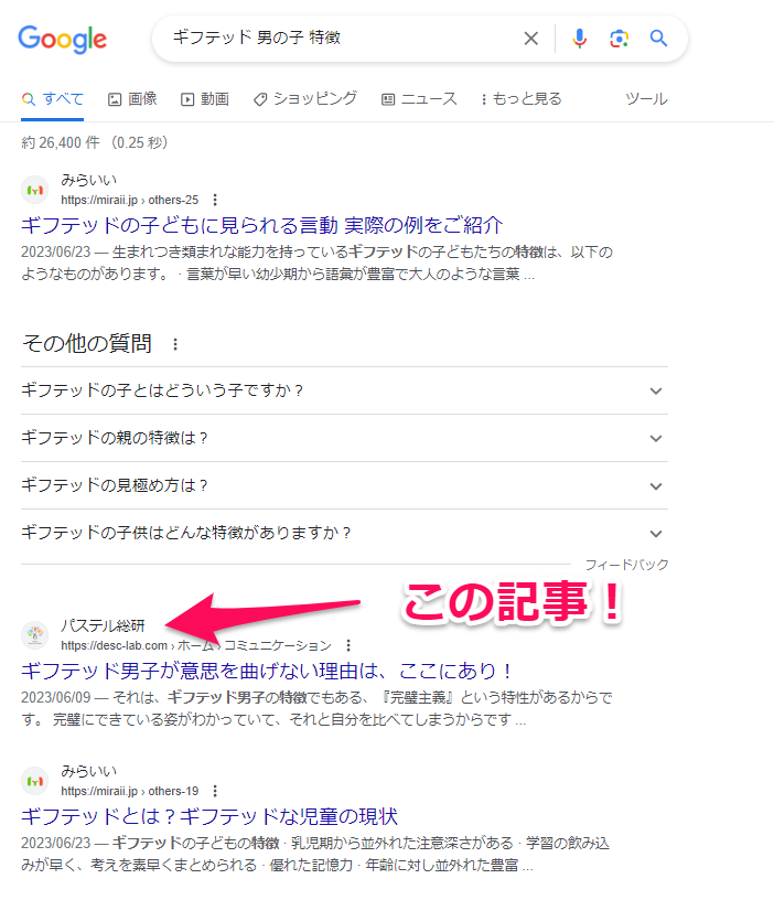 広路貴代江です。こんばんは!今日はメルマガ転送しただけの記事が1か月に6,773回も!検索結果に載っちゃった事例をお伝えします!このすんばらしい成果を出されたのはギフテッド男子の専門家発達科学コミュニケーショントレーナーの神山彰子さん^^