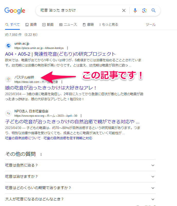 広路貴代江です。昨日は、メルマガを自動転送しただけで1か月に6,773回も検索結果に載る記事が出来ちゃった事例をお伝えしました!▼まだ読んでない方はこちら今日もメルマガを自動転送しただけシリーズ!(笑)メルマガを自動転送しただけでペルソナがひと月で1,566回見られてる記事ができちゃった事例をお伝えします!!!このワッショイな成果を出されたのは吃音×発達凸凹キッズの専門家発達科学コミュニケーションマスタートレーナーのおざわつきこさん^^