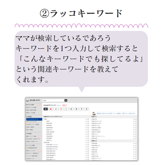 分かれば子育てママのリアルな悩みが分かっちゃうんです!そして、このSEOキーワード=ママのリアルな悩み自分の頭で考えなくても教えてくれる神ツールが
