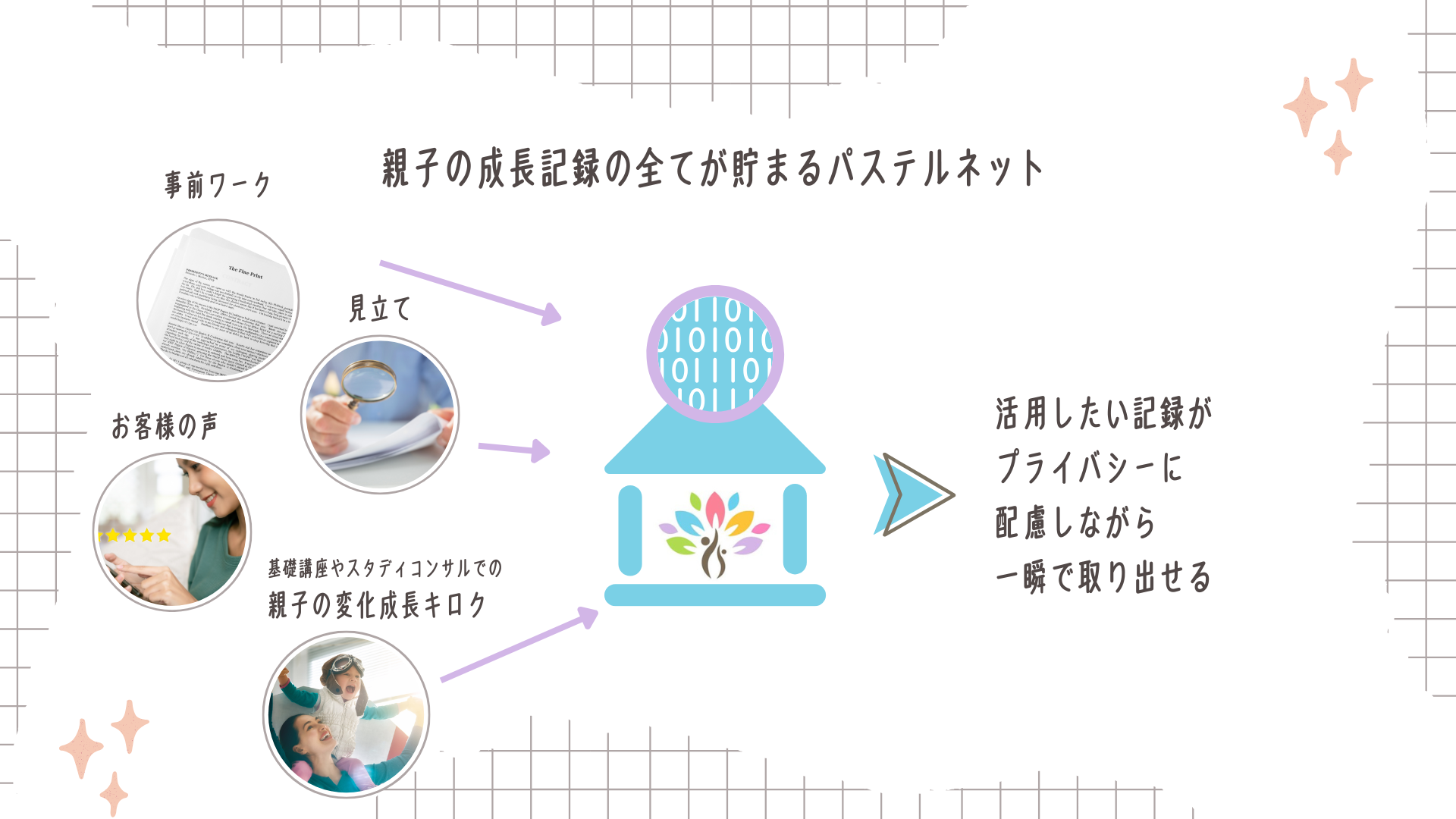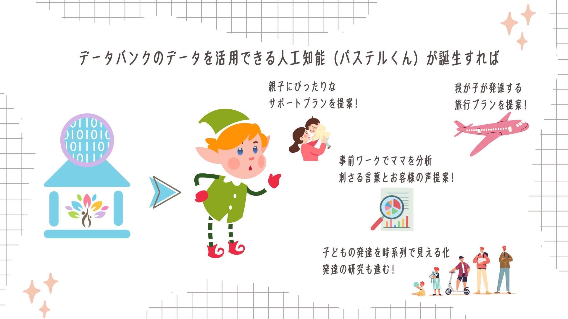 集まってないから、全体で活用しにくい!だから、親子の成長記録を集めるデータバンクを作りたいと考えています^^
