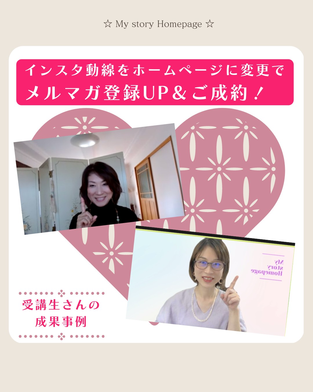 なぜ、17倍のシナジー効果があるのか?ポイントは2つあります。一つ目は信頼が深まること!インスタグラムの投稿だけでは登録に踏み切れず不安だなぁ~と感じているフォロワーさんもいます。ですが、インスタグラムの先に専門家としてのホームページがあったらどうでしょうか?さらに信頼が深まります^^2つ目は感動を伝える力!