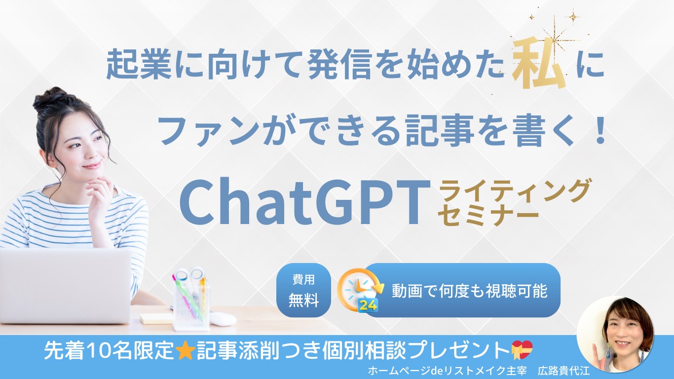 広がっています。ChatGPTを使いこなしてスピードアップできる人が売れていく時代がきています。ChatGPTを使いこなすにはちょっとしたコツが必要なので使ってる人に聞くのが近道!今こそ戦略的に学んでまずは記事ライティングでもChatGPTを活用できる側の起業家になりませんか?ただ今動画セミナー準備中なのでAI時代の波に乗りたい方はご活用くださいね^^