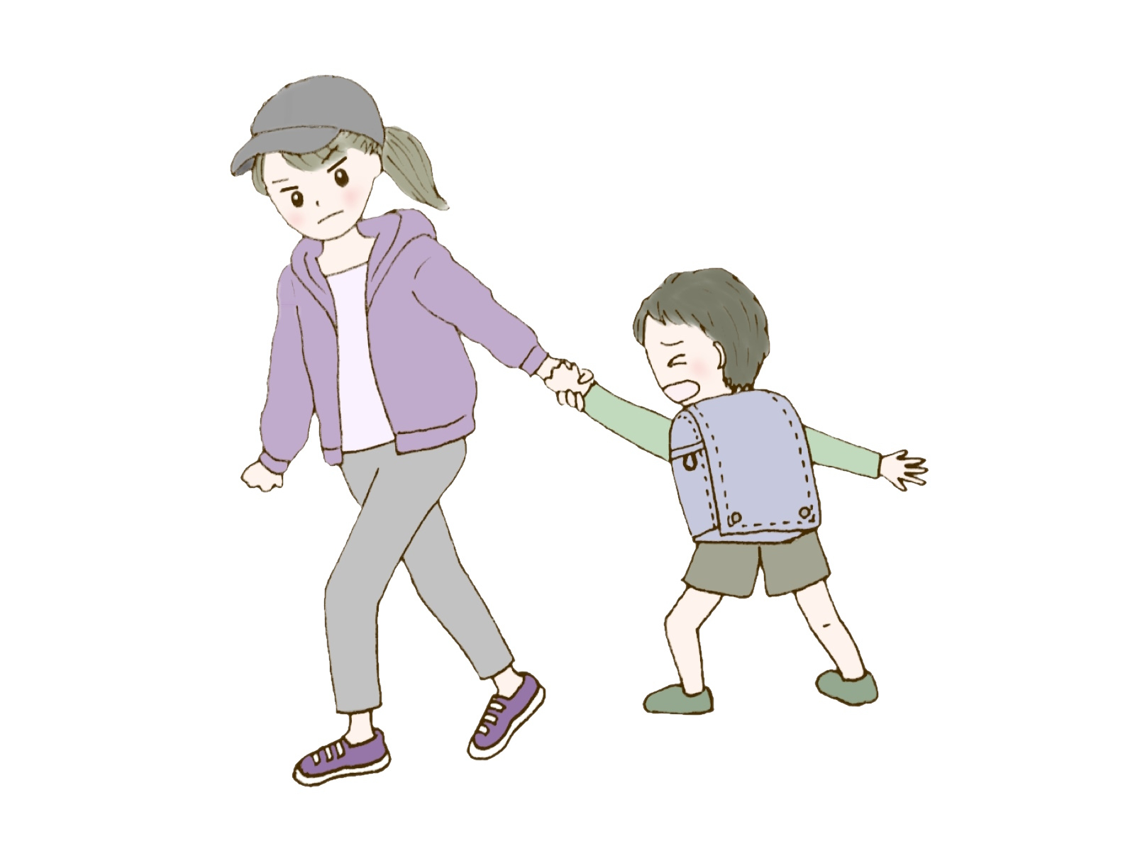 玄関で無理やりランドセルを背負わせ、