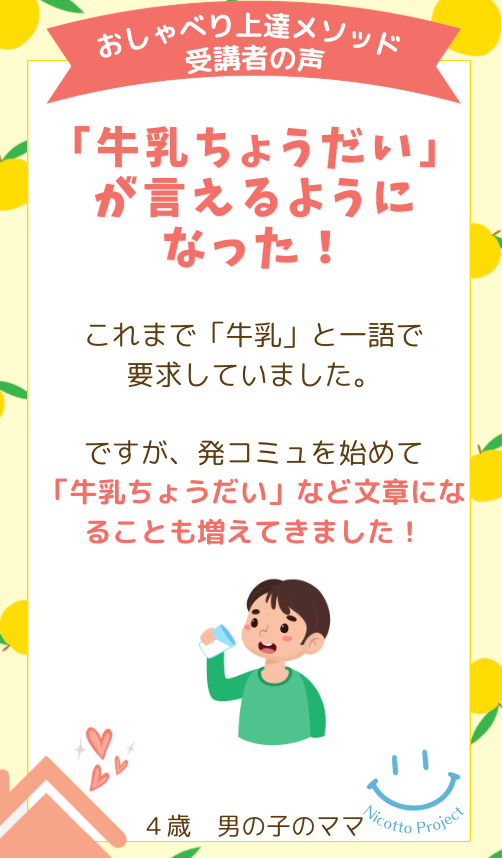 自閉症の子はことばが遅れる特徴がありますので、小学校までにこのストーリーまでいかない子もたくさんいるのが現状です。自閉症の子の脳の特性で正直放っておいてもことばは自然には伸びにくいです。だからこそ今ママが上手に手を差し伸べて