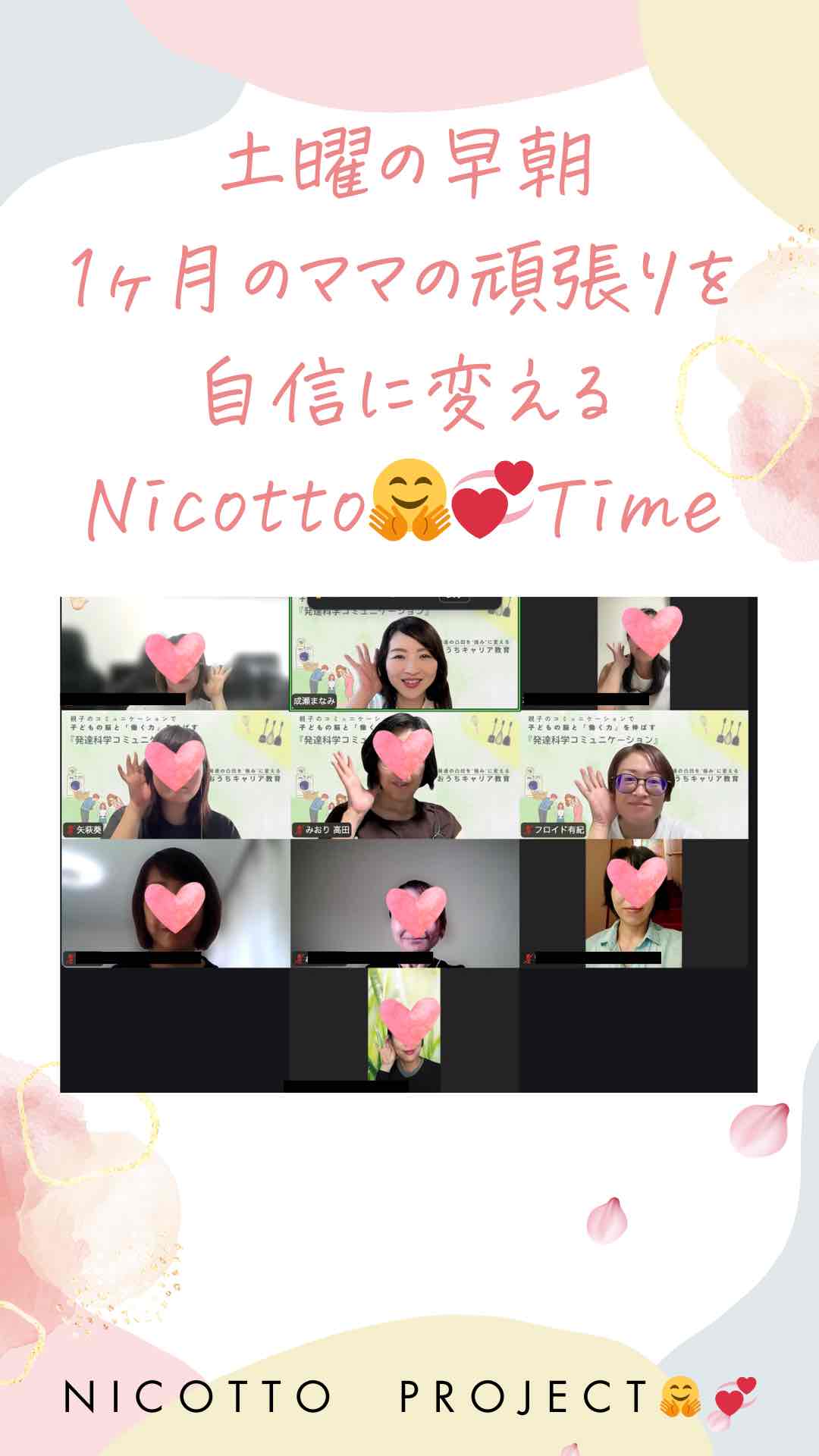 今日は朝から、受講生ママたちと一緒に「1ヶ月のお子さんの変化」を振り返りながら成長のヒントをシェアするNicottoタイムがありました。