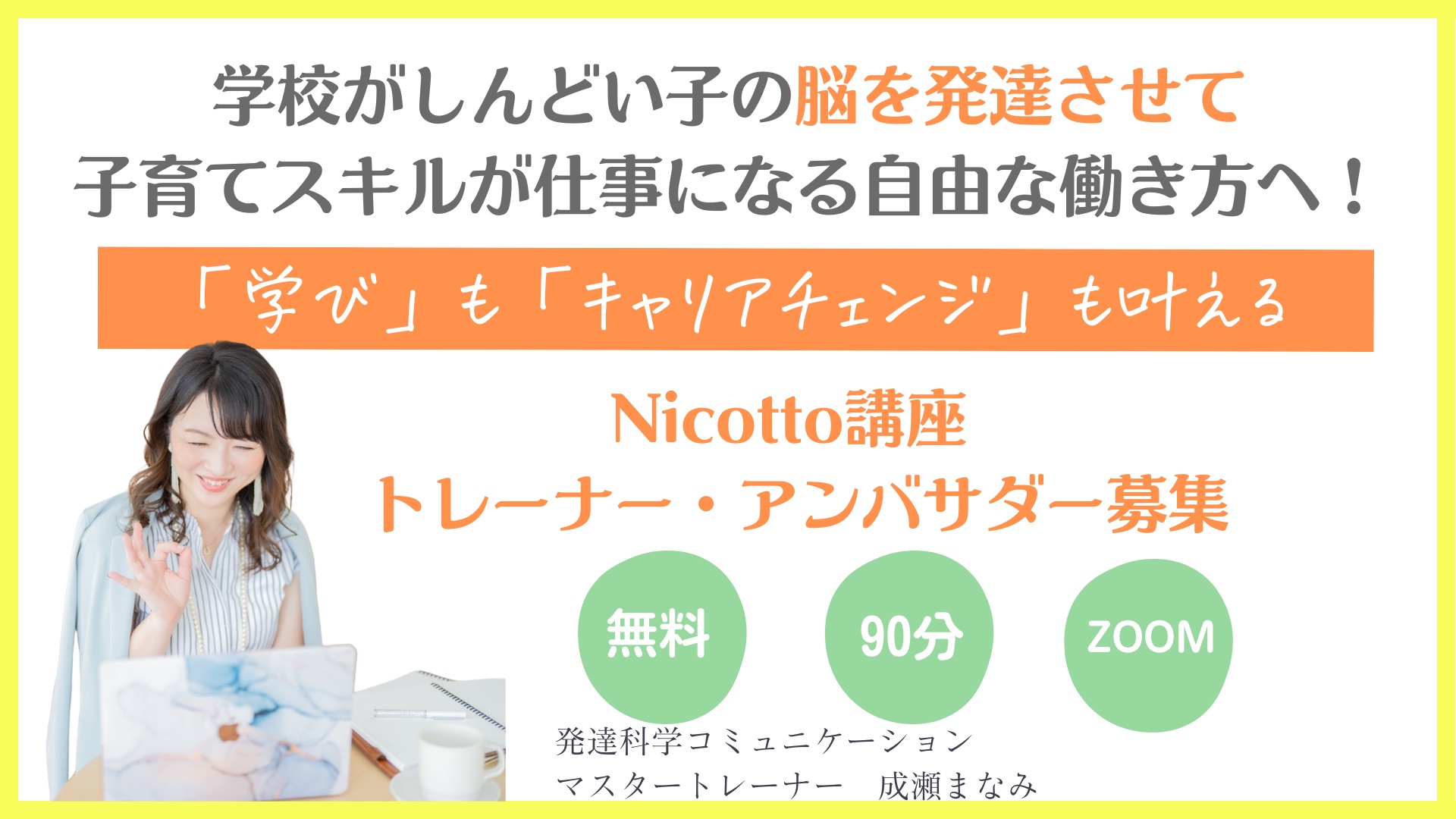 アップデートすることができます^^一緒に創っていく人が1番学びが深まるので1番得なのです!◯◯◯さんの悩んできた経験や試してきた関わり方が、未来の誰かの“希望”になる^^Nicotto講座はどんな方におすすめか?と言うと✅ 子どもの不登校や行き渋りで働き方を変えようか検討中✅ わが子に「自分の人生を選ぶ力」を育てたい✅ いつかは仕事につなげたいけどまずは自分にできることから始めたいこんなママにおすすめです^^\Nicotto講座メンバー募集/