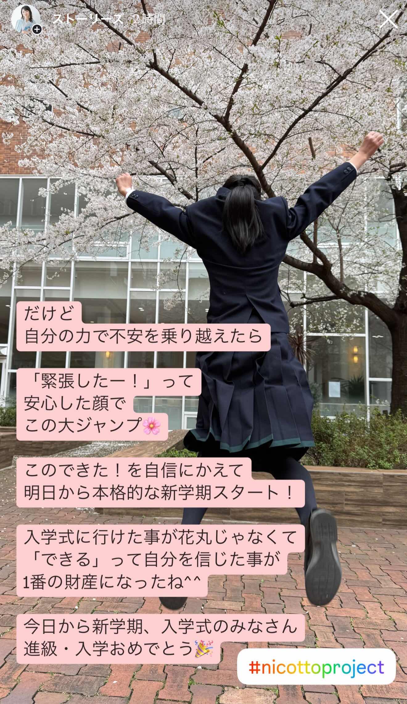 誰よりもはじけて桜の下で写真を撮っていました^^自分の入りたい学校を選びそのために受験して願っていた進路に進めてもこんなにも入学式はワクワクではなく逃げ出したいほどのプレッシャーなのだと改めて凸凹キッズの大変さを目の当たりにしました。それと同時に