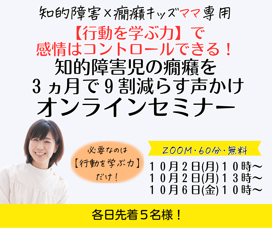 【セミナー募集開始】 知的障害児の癇癪を9割減らすオンラインセミナー