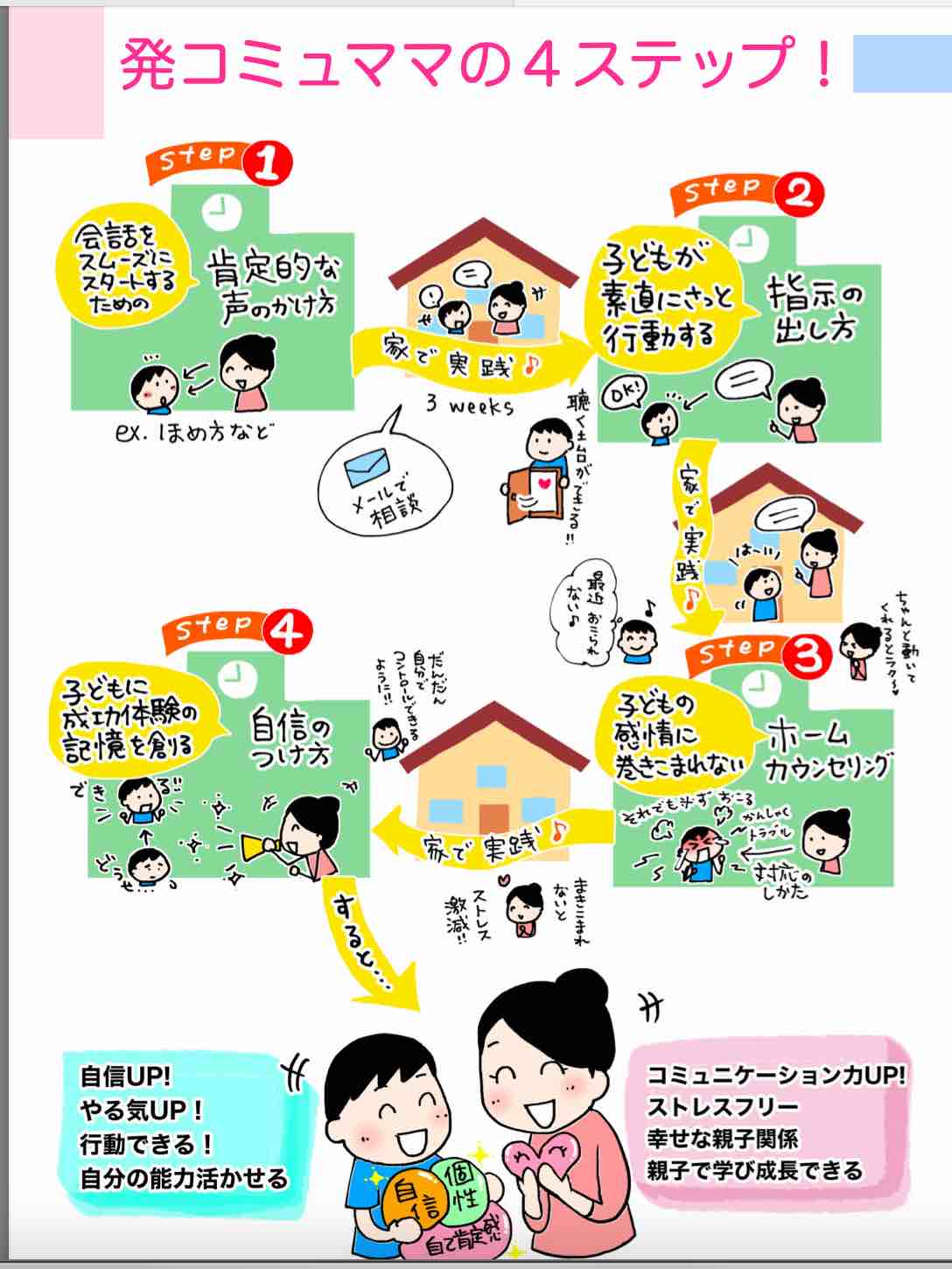 それに加えてお母さんにマスターしていただきたい「4つのステップ会話術」をお伝えします。