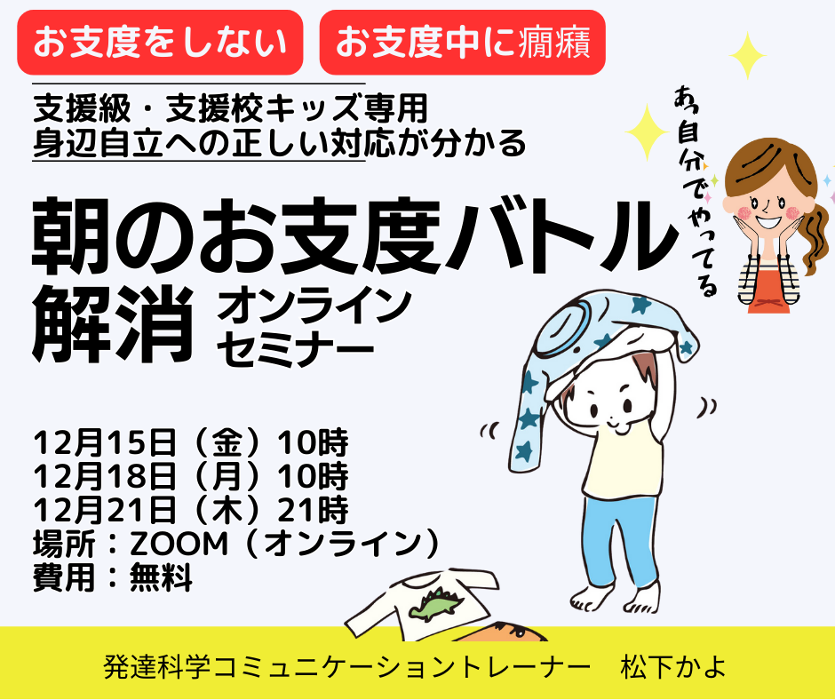 朝のお支度バトル解消オンラインセミナー=========<日時>