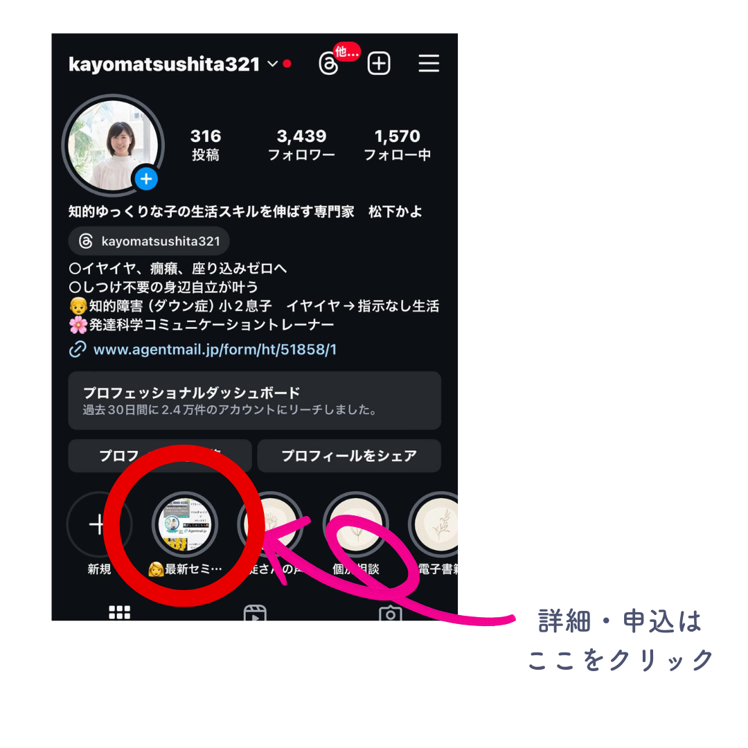 お申し込みくださいね。インスタグラムのハイライト