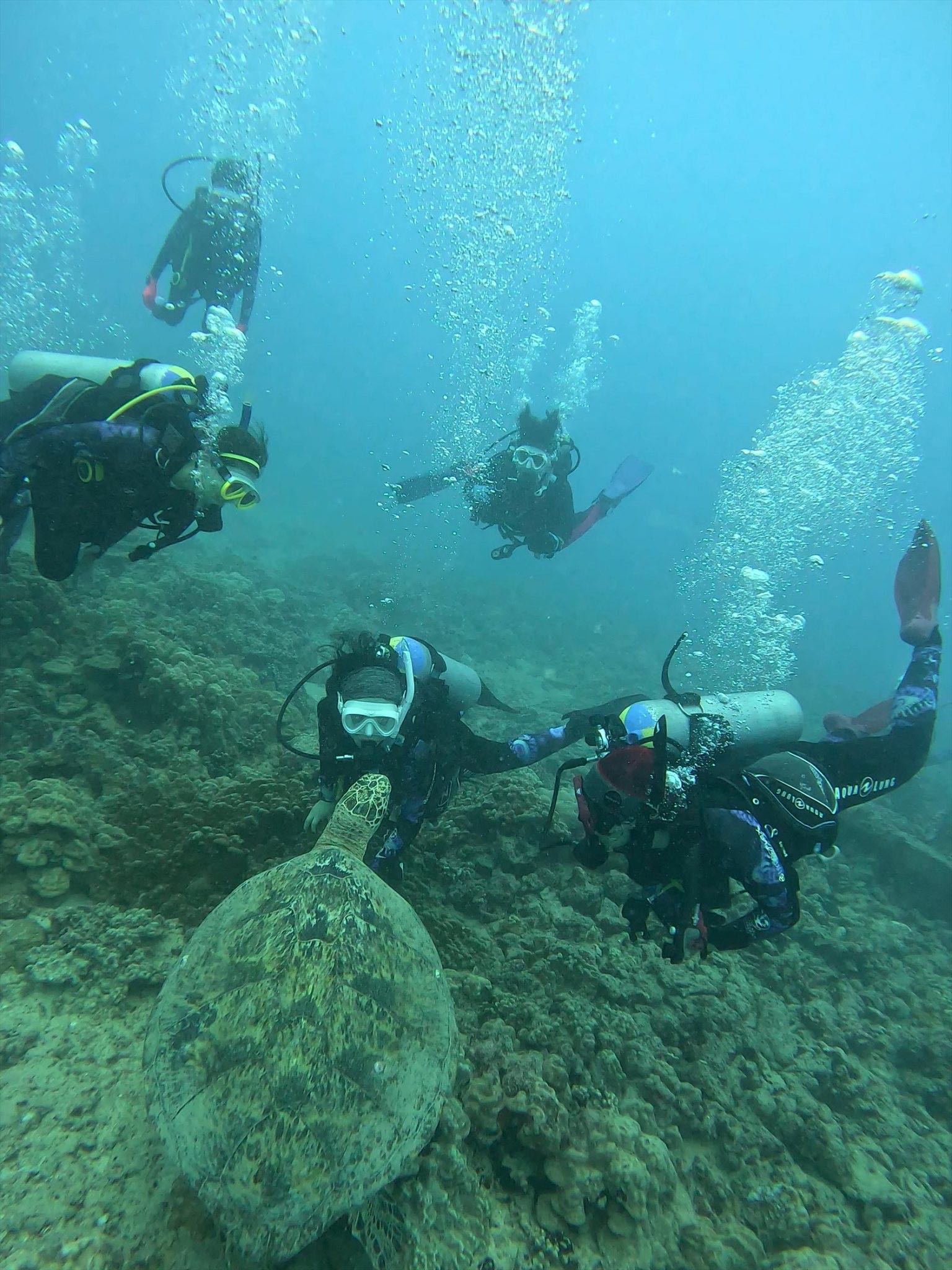 ダイビングで亀さんと泳ぐ体験⇩