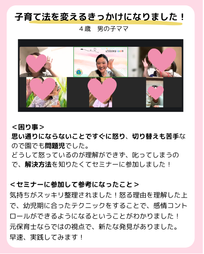 子育てのプロのセミナーになります。\叱りは逆効果/