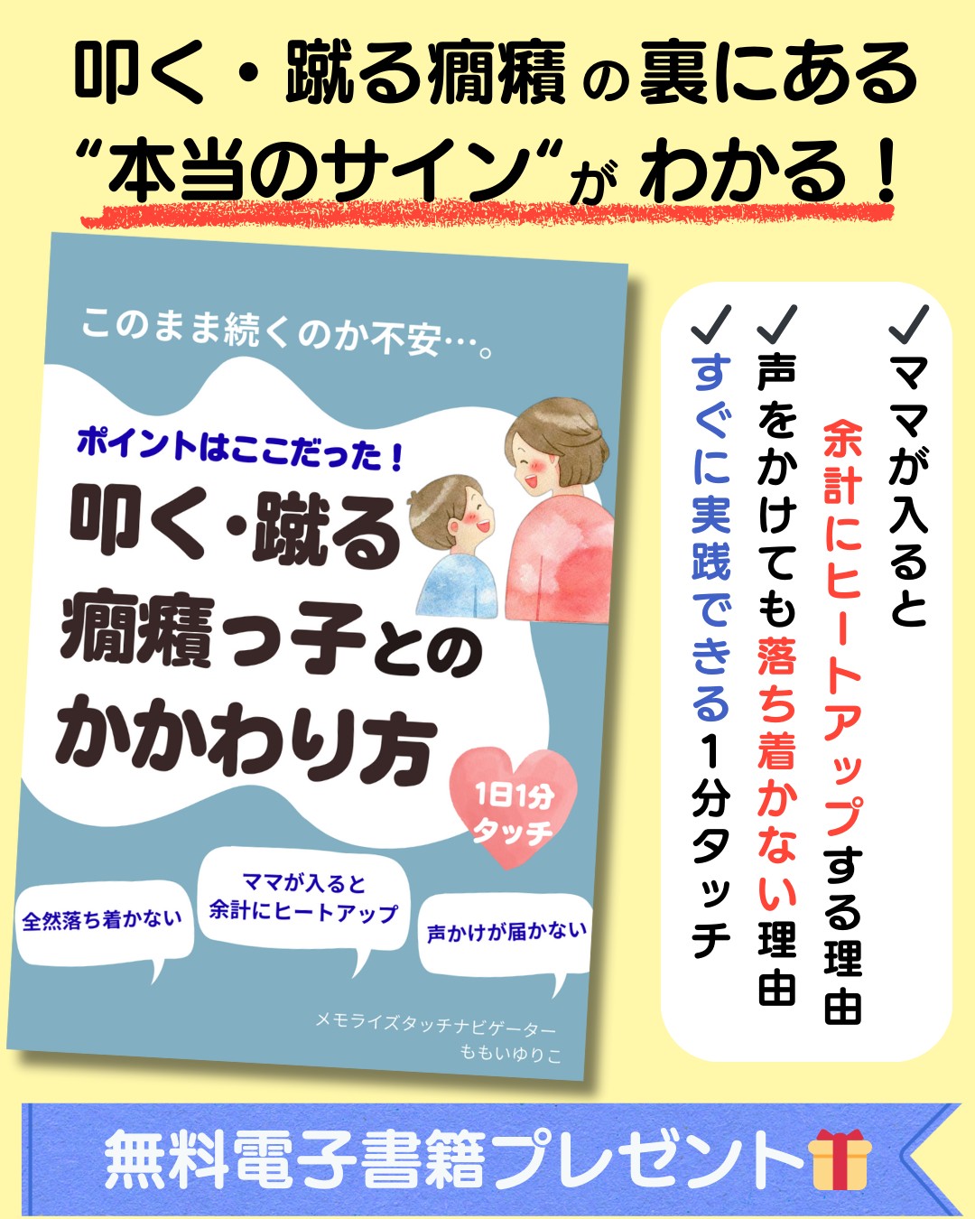 - 【2026-02-12 10:00:00】配信 【号外】叩く・蹴る癇癪が起きたとき、ママが迷わなくなる “最初の1分”の関わり方がわかる小冊子プレゼント