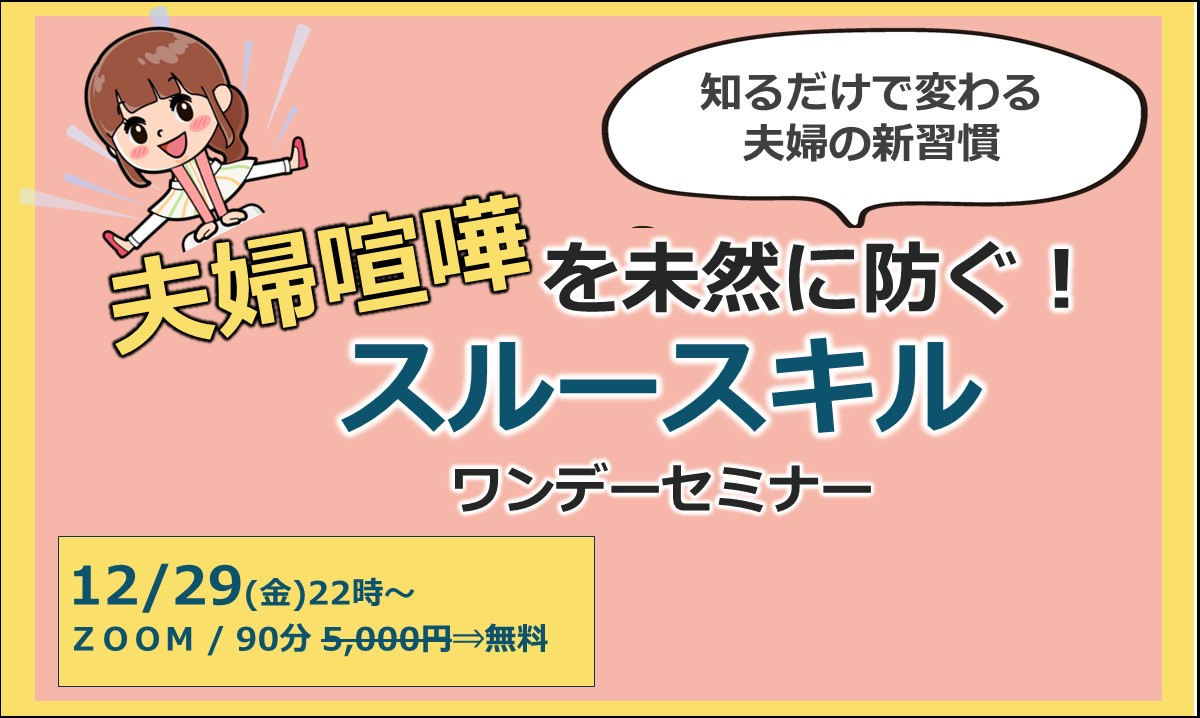 【号外・12/29限定セミナー】夫婦喧嘩を未然に防ぐスルースキル