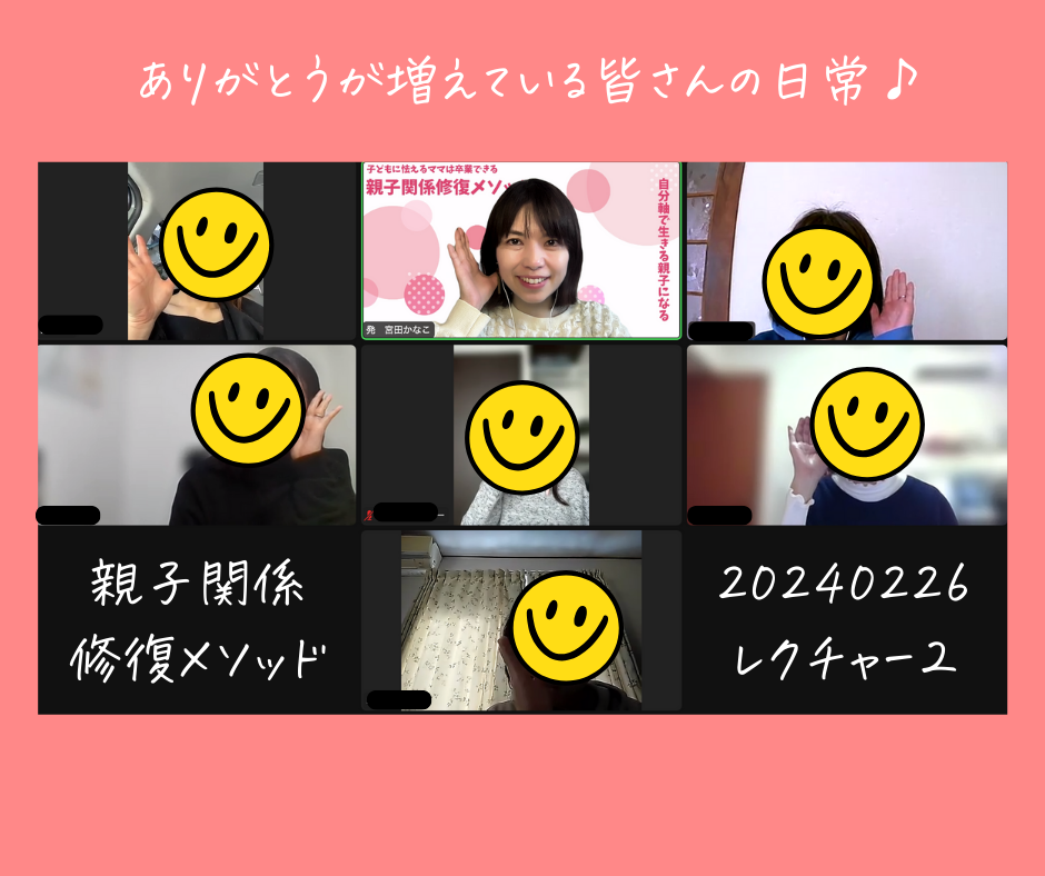 増えていることでした!私は皆さんの初めの状態を知っているのでとっても嬉しい限りです^^親子関係を修復する過程で、一番初めに訪れる変化、それがありがとうの言葉が増えることなんです。特に、不登校や行き渋りが始まったお子さんが暴言が激しく態度が、横柄、