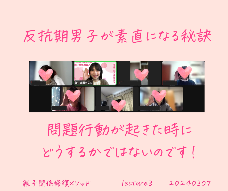 今日も昨日に続いて、別のメンバーによるレクチャー3がありました!そういえば最近癇癪なくなってる!ゲームを朝のご褒美にしたら夜はスッと寝て翌朝自分で早起きに!自分のことを認めるっていうのが腑に落ちました!子どもとの会話が増えました!自分で考え行動することが増えました!暴言暴力減りました!参加したみなさん、