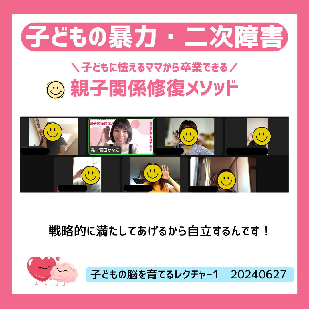 ☆*★*☆*★*☆*★*☆今週の私はレクチャー祭り!積極的に質問をしてくださるみなさんの姿勢に感無量です!あなたのちょっとした質問や相談が一緒に学ぶ受講生の更なる学びにつながる!1人で子育てしていては気づけないことがわかる、それが親子関係修復メソッドで学ぶ、最大のメリットだと感じています!ここに集まる皆さんはお子さんの癇癪・暴力・二次障害状況からなんとか抜け出したくてどん底状態からスタートされた方ばかりです。1人で悩んでいても何も解決しないどころかどんどん精神状態も苦しくなるもの。ですが、ここにきたらきっと、私は1人じゃない!がんばろう!って思えるのではないでしょうか?詳しいレクチャーレポートは今週末のメルマガにて。乞うご期待!その前に、チラッと