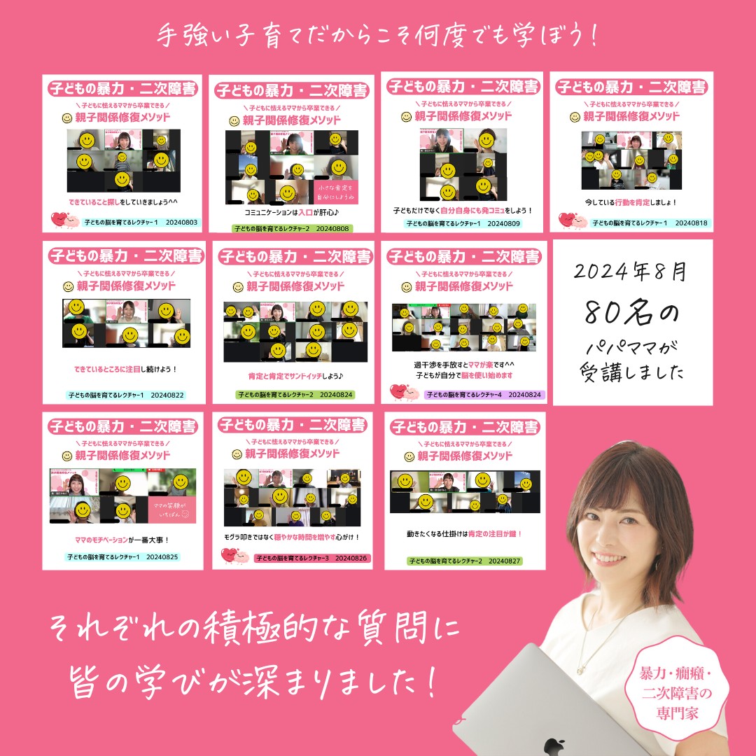 レポートしますね(^_−)−☆こちら▼反抗的・無気力な子に悩む80名のパパママが受講!2024年8月親子関係修復メソッド・レポート▶Copyright©2022-Kanako Miyata. All Rights Reserved.