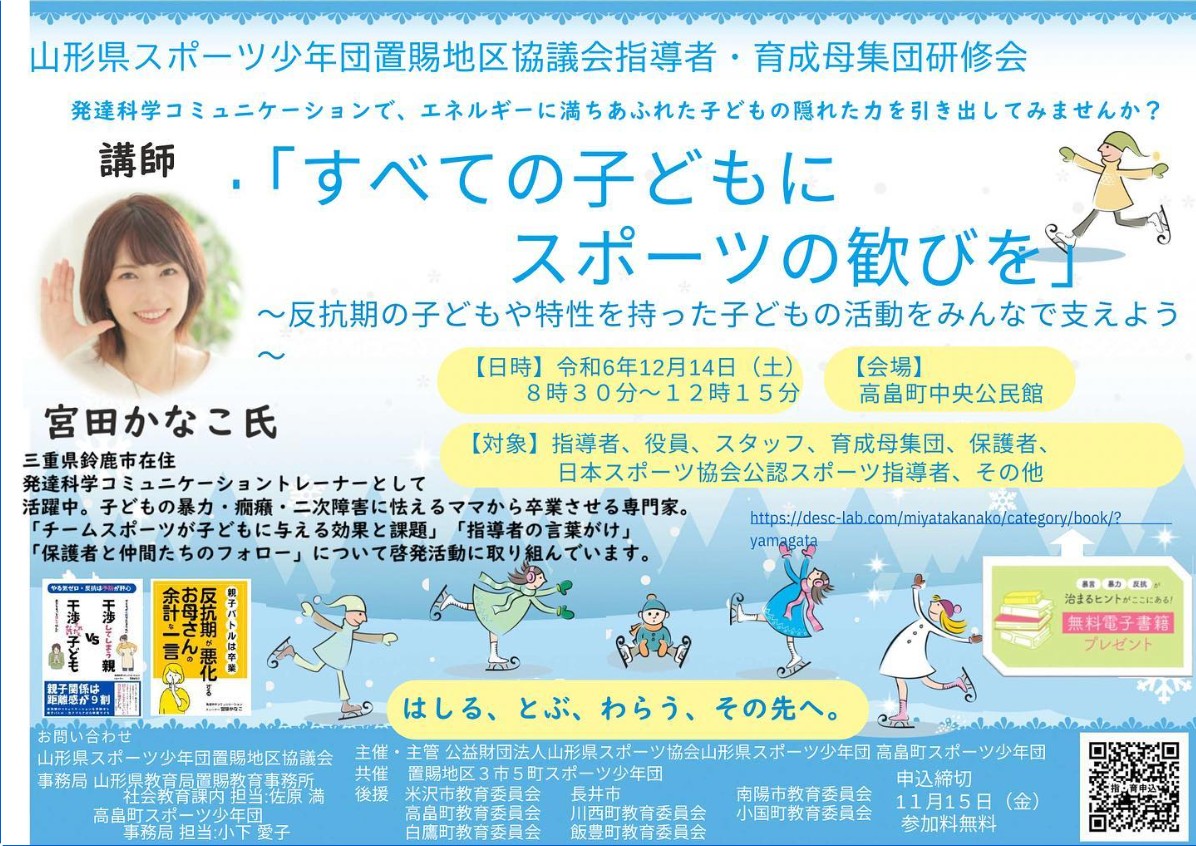 来たる2024年12月14日、山形県高畠町で行われるスポーツ指導者研修会において講師としてお招きいただいてます^^