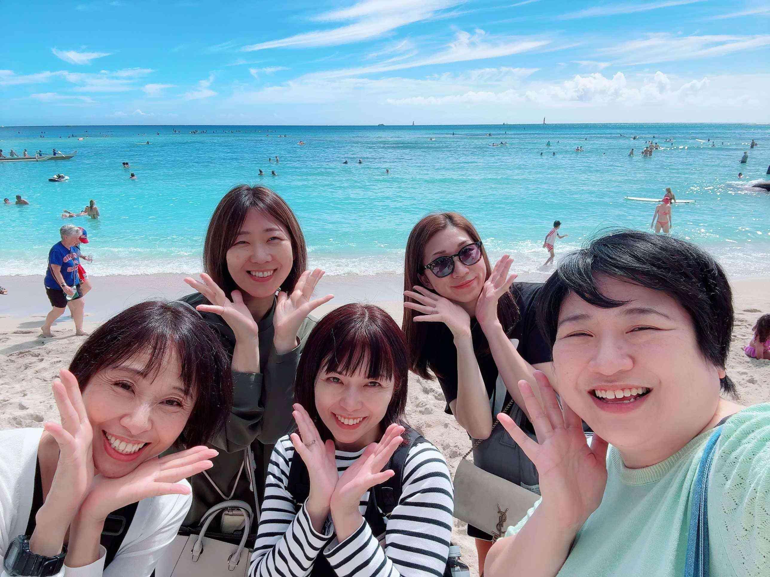 (Nicotto!ライブでお馴染みのトレーナー仲間とワイキキビーチをお散歩中)泣いたり笑ったり、驚いたり、感動したり・・・感情がジェットコースターのように毎日揺れ動いています!この数日間で、