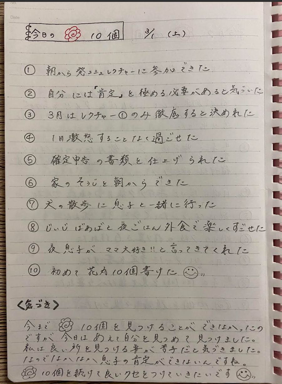 花丸とは、受講生さんが自分自身に送る1日10個の花丸のことをいいます。▼ 3月1日は Mさんにとって花丸記念日♪