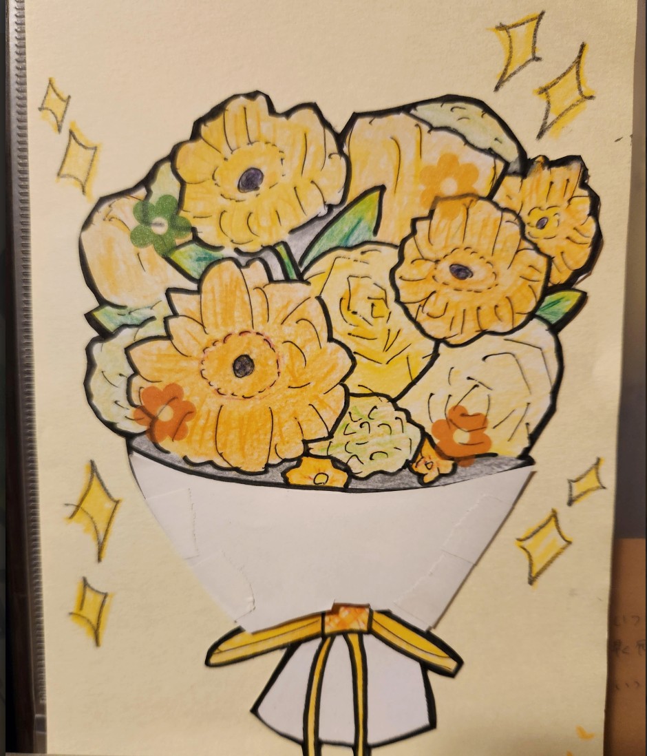 手作りの花束カード。