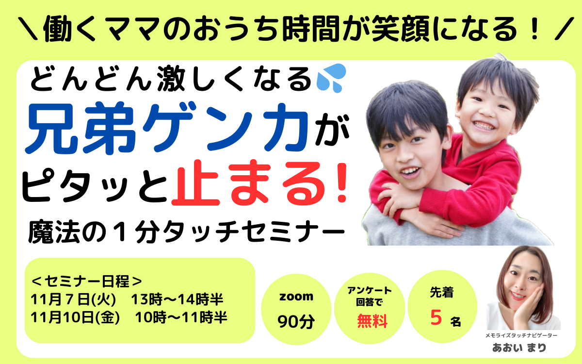 兄弟ゲンカでお悩みのママへママが魔法の1分タッチをするだけで