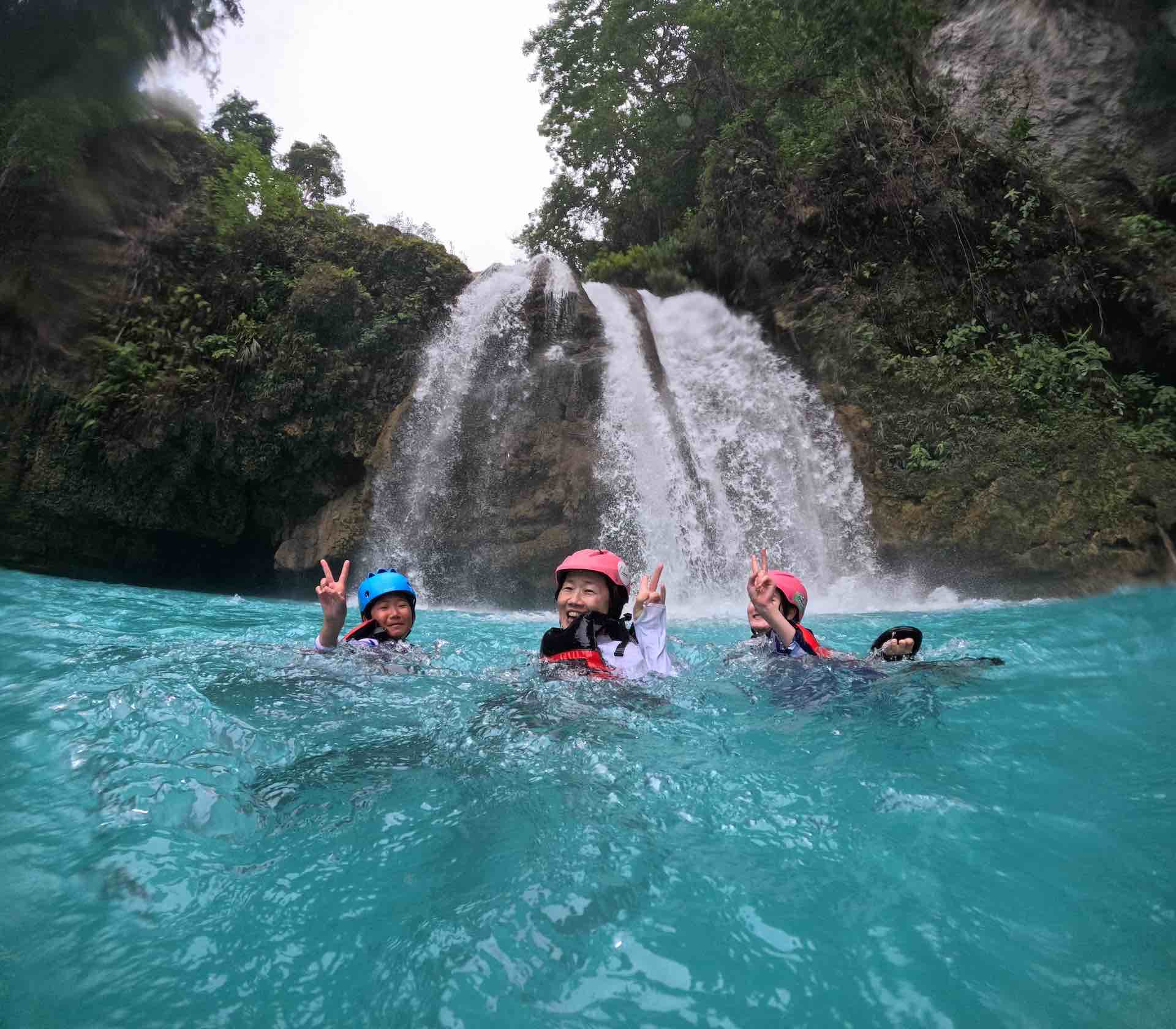 不思議な色の滝壺で