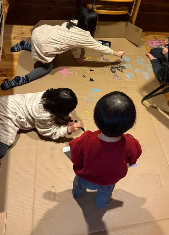 大きな段ボールに絵を