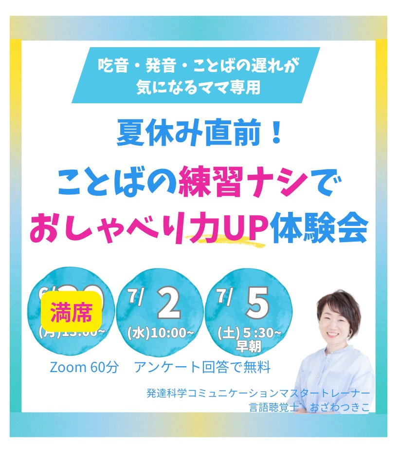「明日締切|吃音体験会、無料ご招待はあと3名」