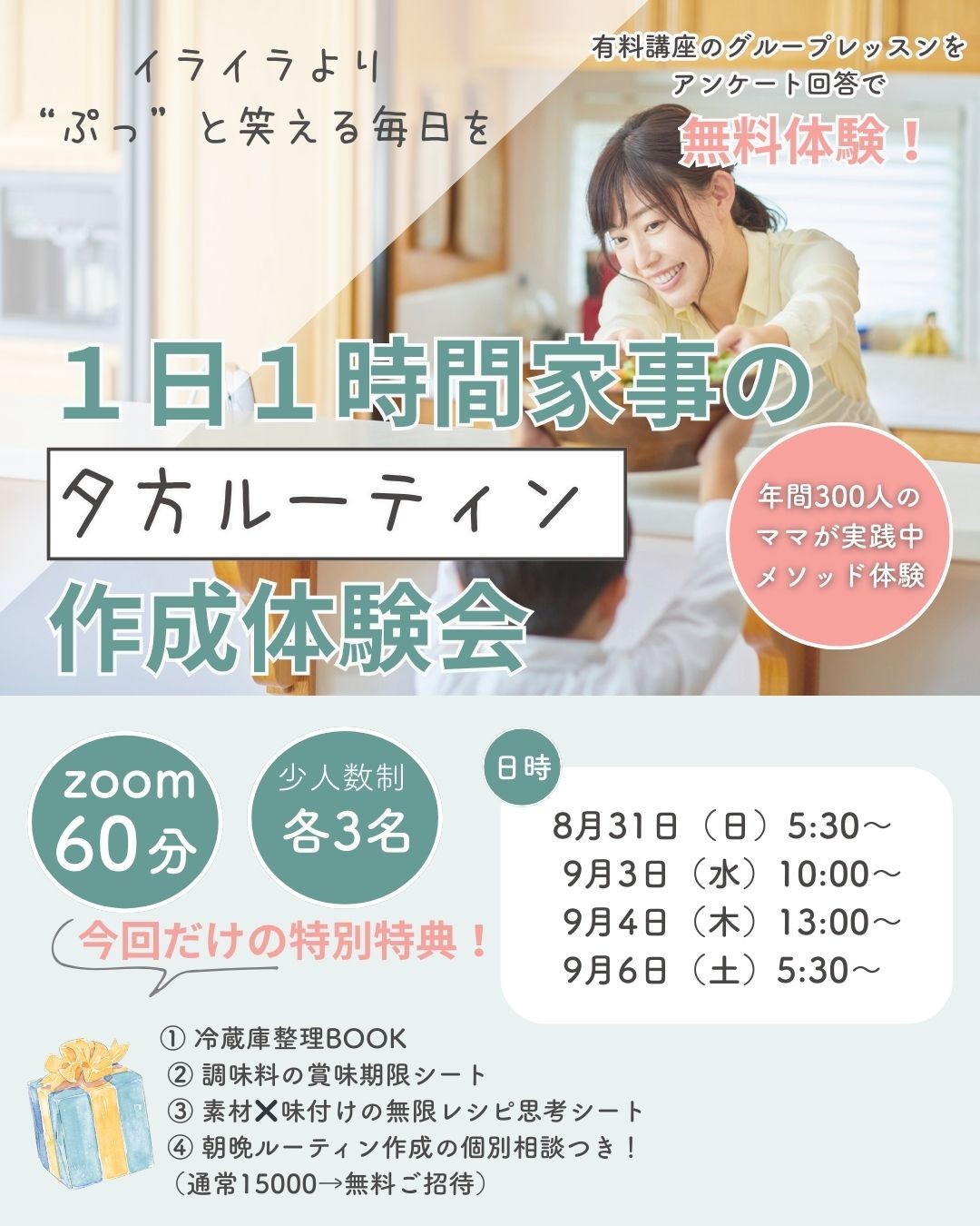 【号外】\イライラより“ぷっ”と笑える台所育児を/ 1日1時間家事の夕方ルーティン作成体験会