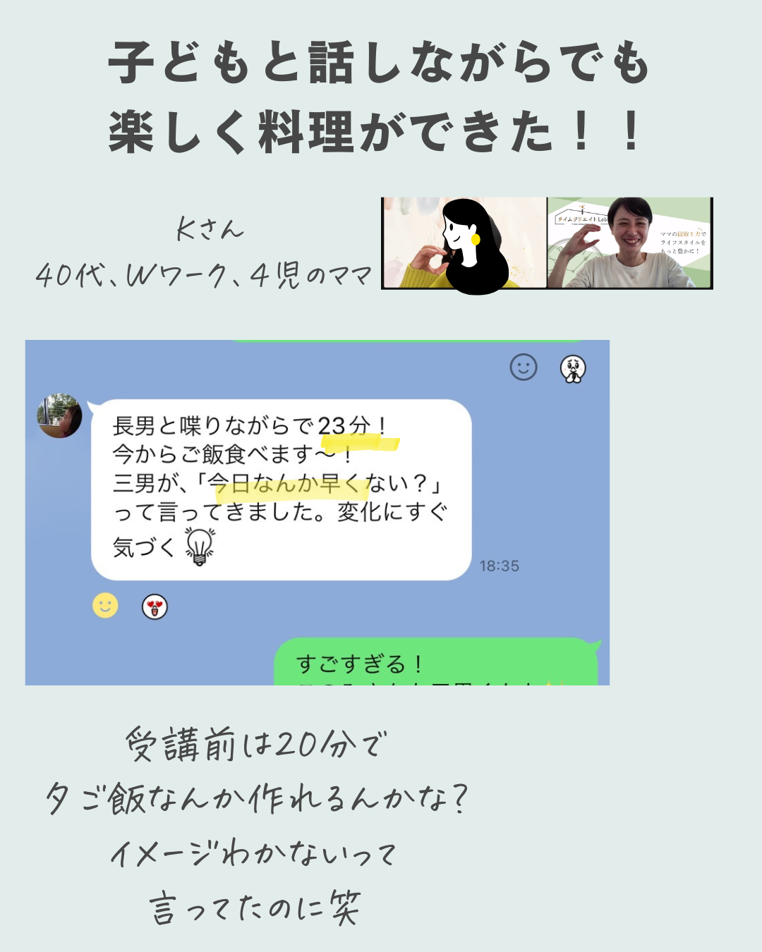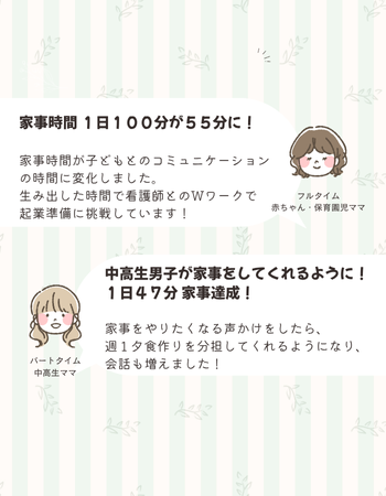 ・食事作りだけで4時間→家事時間34分・自分時間ができたことでパート+