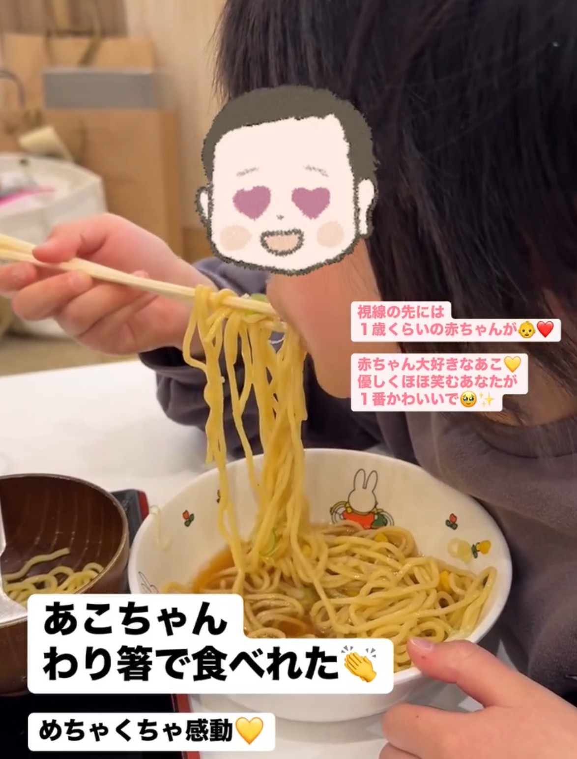 をさせてください^^わが家は昨日今日と家族でおでかけしたのですがとっても感動したことがあるんです!それは、重度知的障害の7歳になる娘あこちゃんが割り箸を使ってラーメンを食べることができたこと♡いや〜!めちゃくちゃ感動して何度も褒めまくりました^^あこちゃんもとっても嬉しそうにニヤニヤすごいでしょ!と言わんばかりにドヤ顔で食べていました(笑)