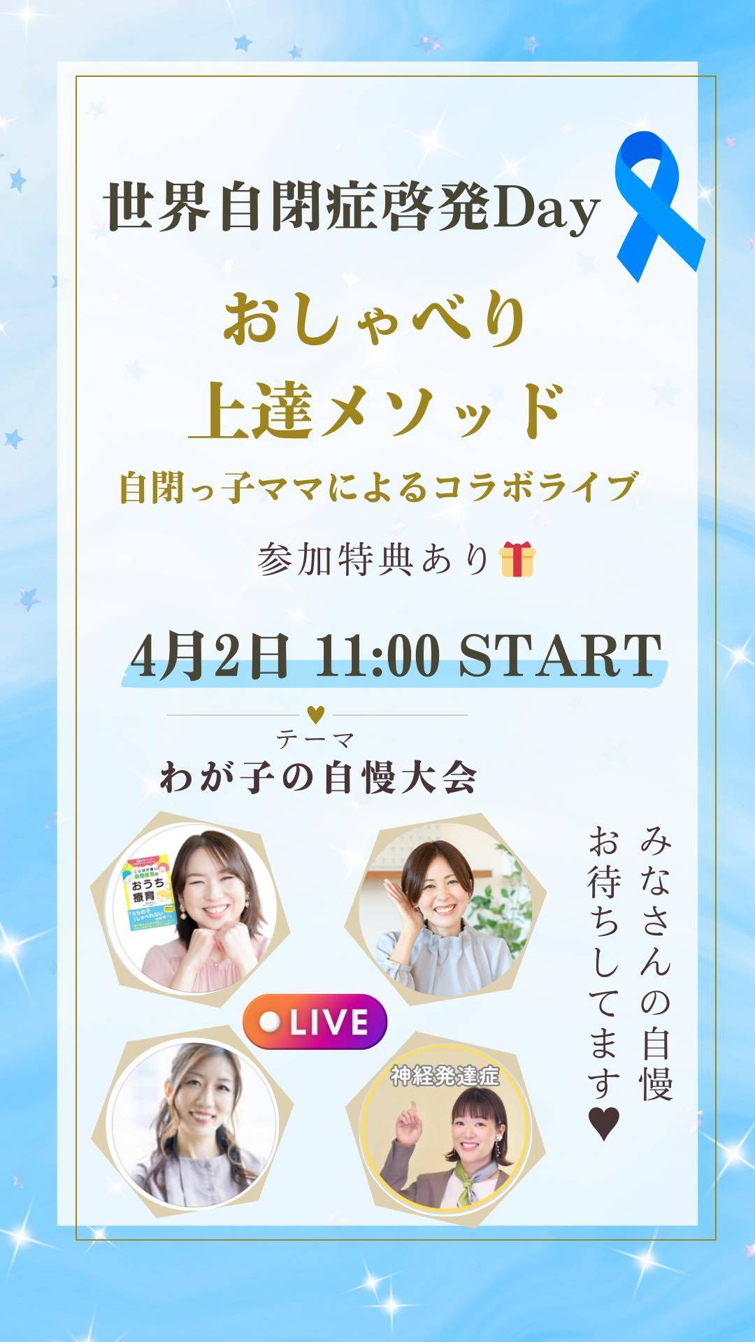 4/2(水)11時~ 世界自閉症啓発デー コラボライブ開催♪