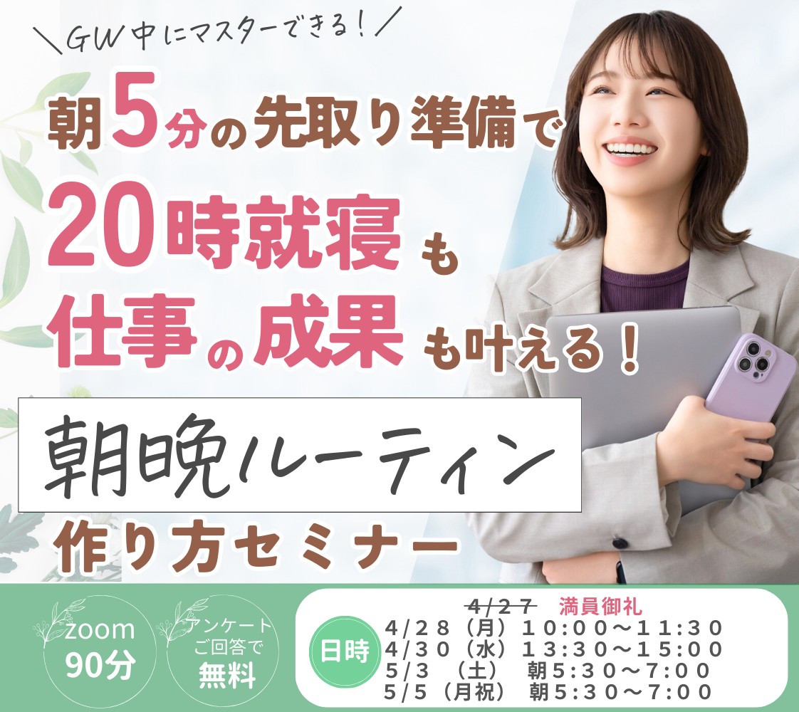 <号外>育休復帰したてのママ必見!GW中に仕事も家事も両方できる私になれる!限定セミナー開催!
