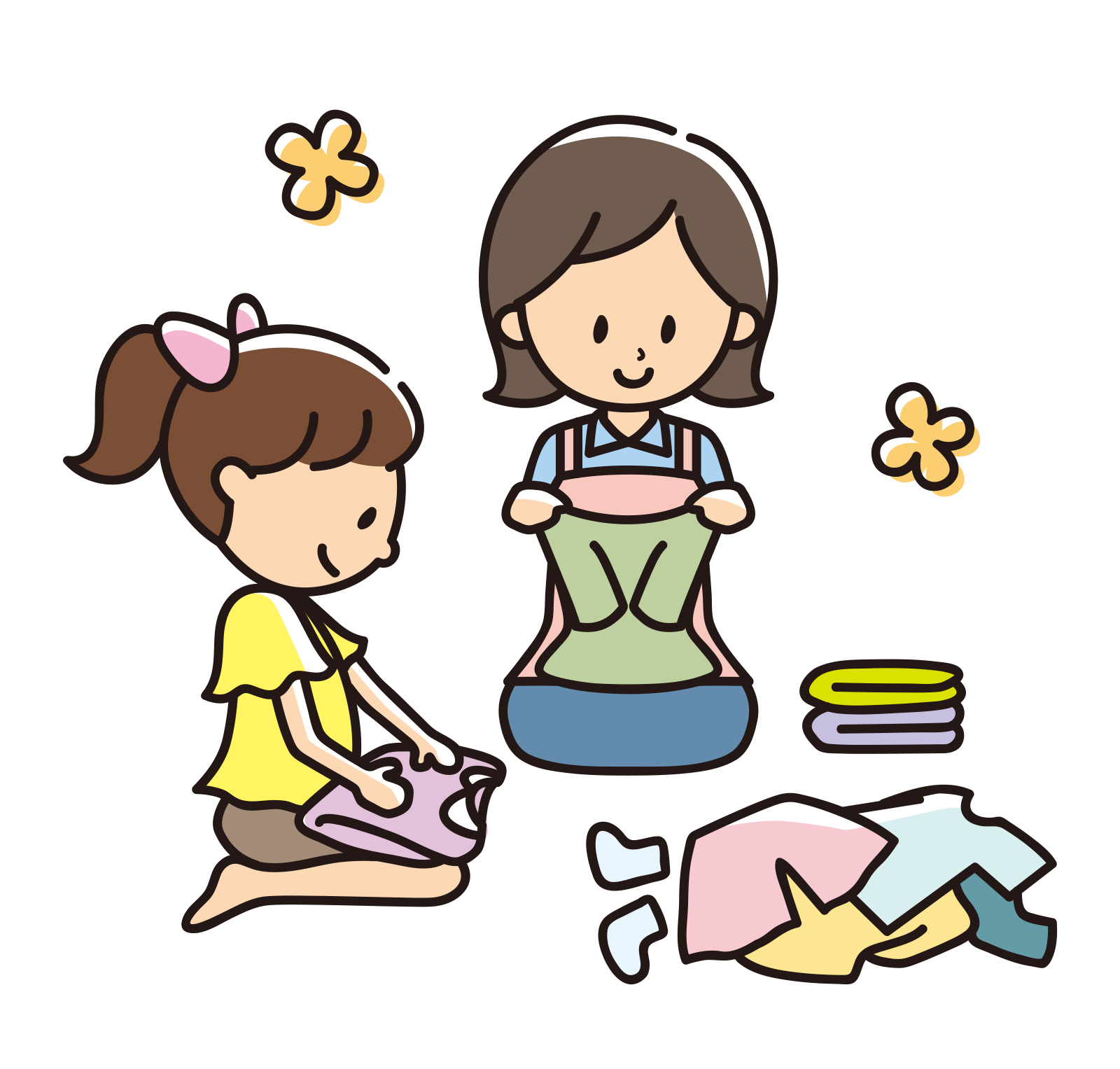 娘が洗濯物をたたむ真似をして
