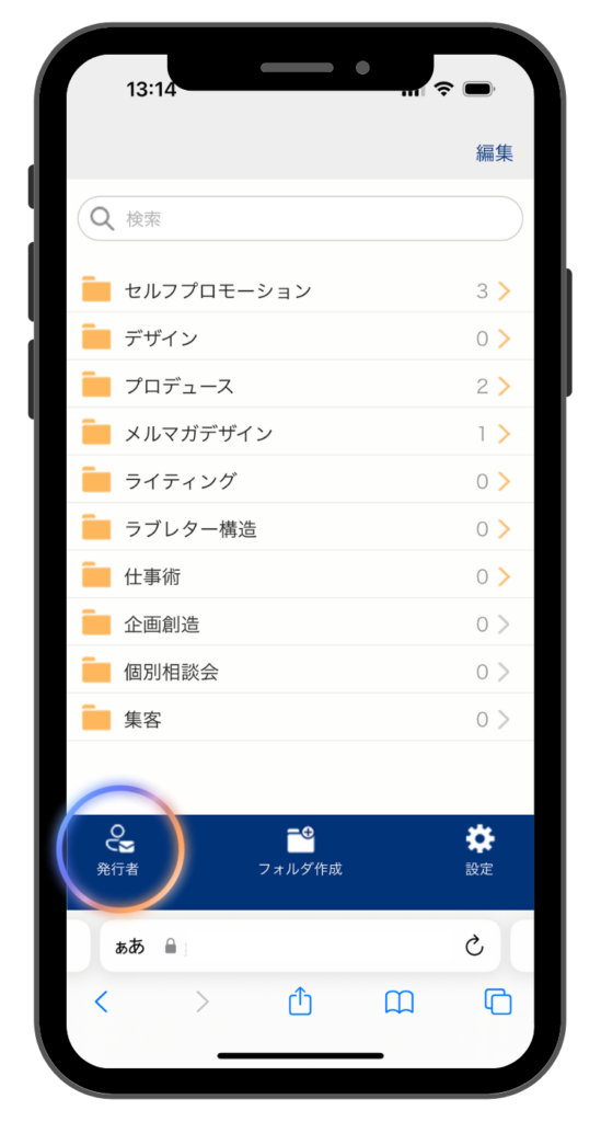 目的の発行者フォルダをタップすると、