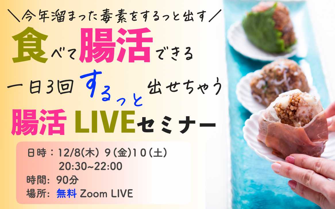 腸から変える一生キレイを 今年溜まった毒素をするっと出せる腸活ごはんLIVEセミナー