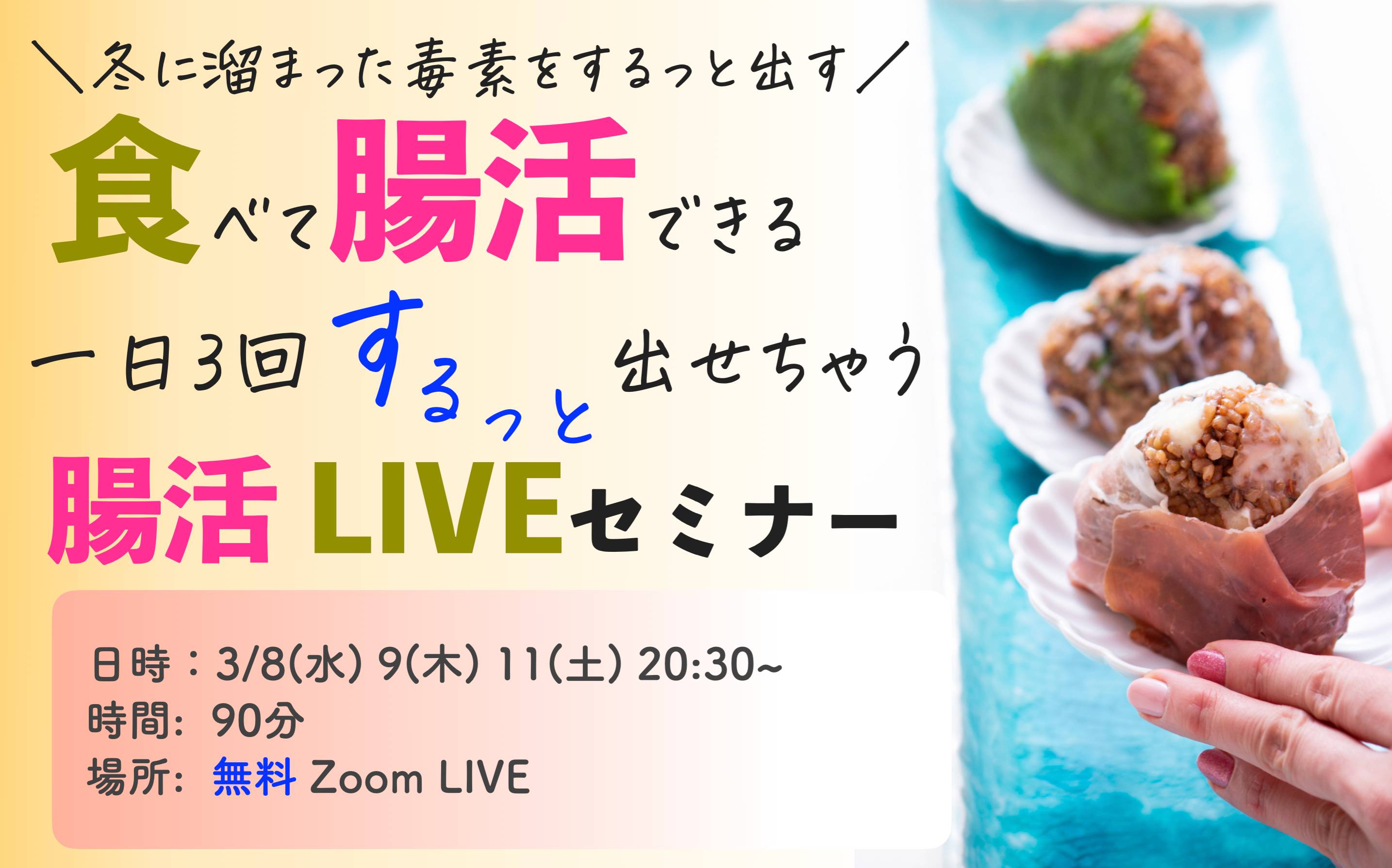 腸から変える一生キレイを 冬に溜まった毒素をするっと出せる腸活ごはんLIVEセミナー