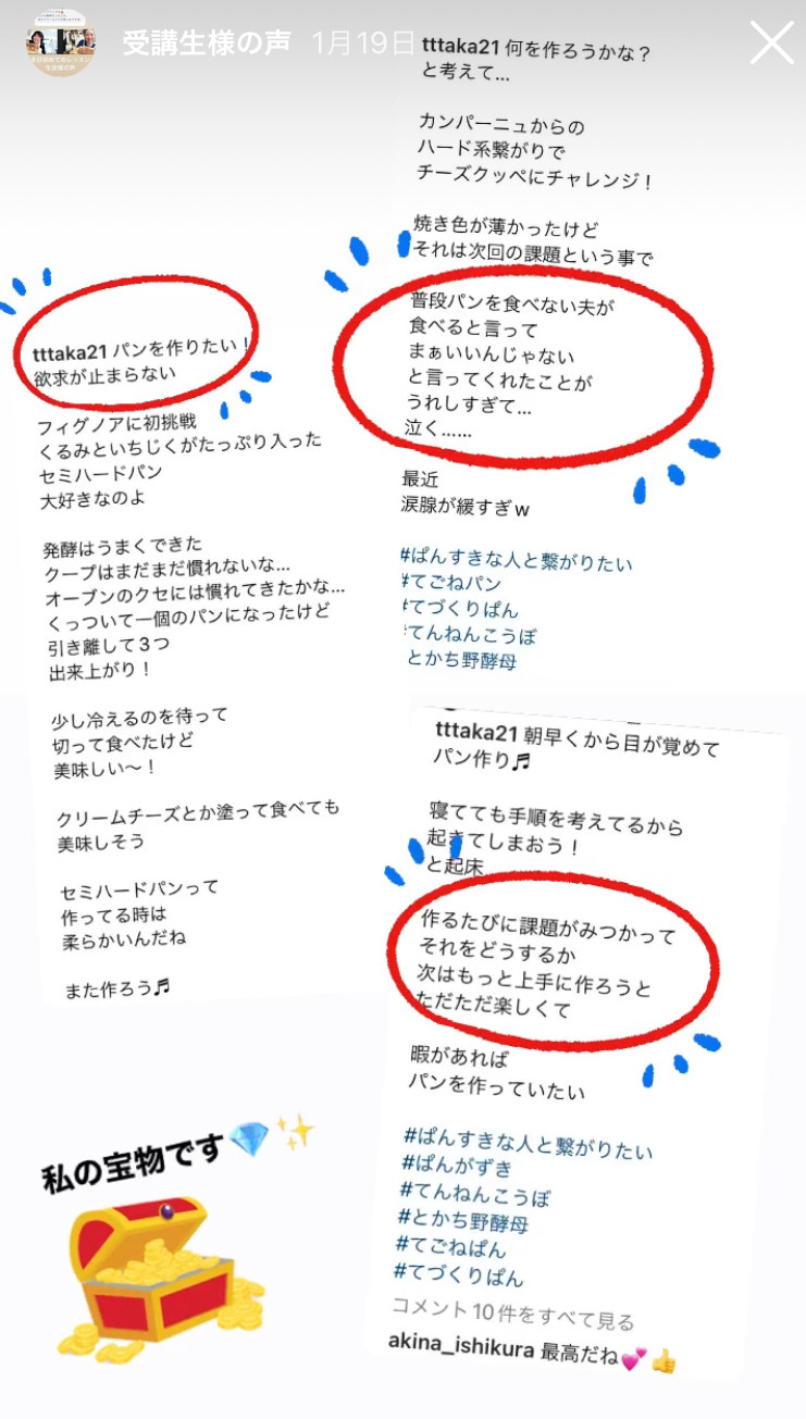 受講生のたかこさんのInstagram投稿文章をご紹介させていただいた時の画像です