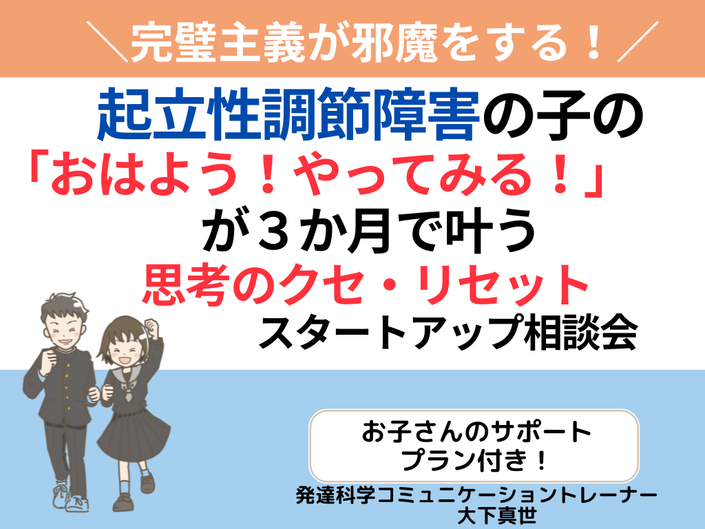 【時間】90分 完璧主義が邪魔をする 起立性調節障害の子の「おはよう!」「やってみる!」が3か月で叶う思考のクセリセット相談会