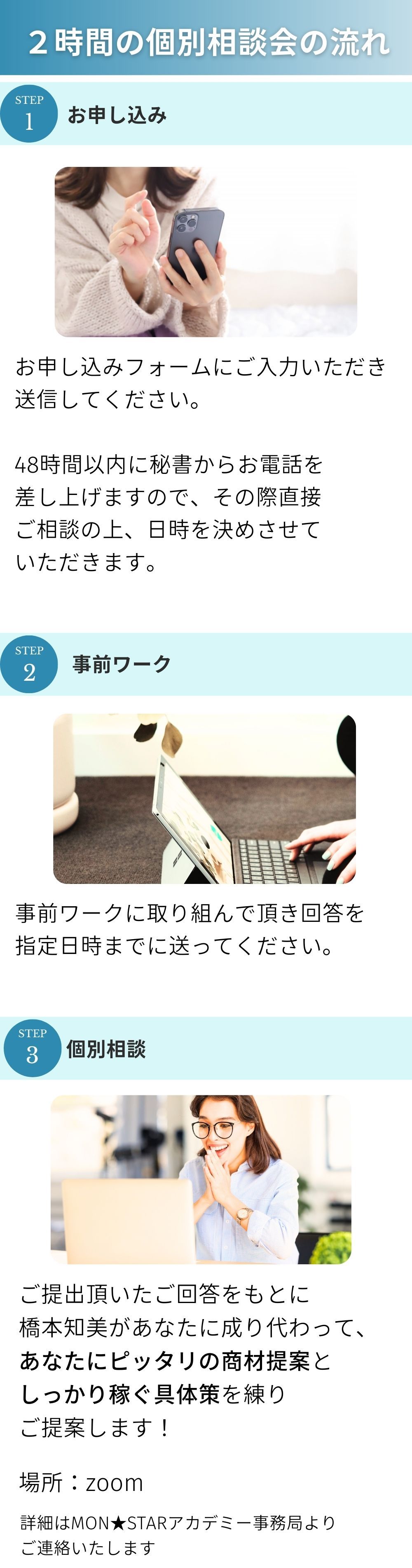個別相談で”こんな風な段取りでやっていくよ”