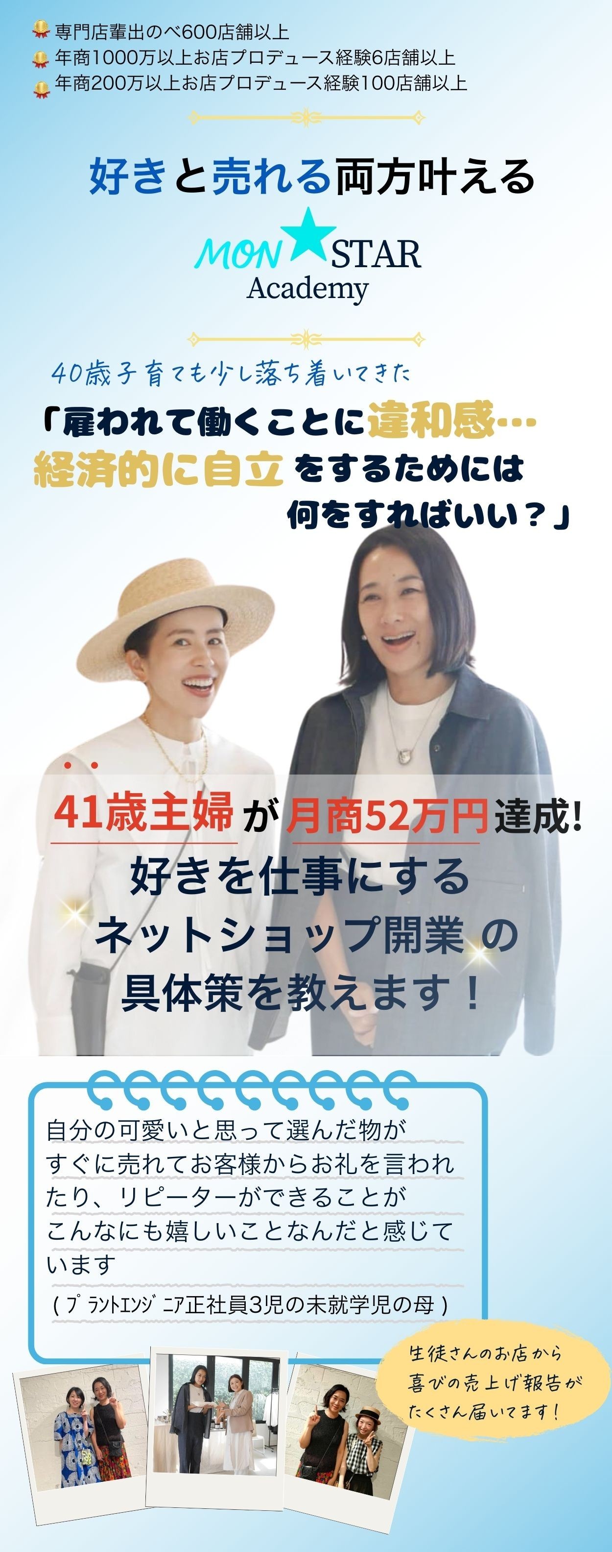 橋本知美が 初売上まで徹底サポート!